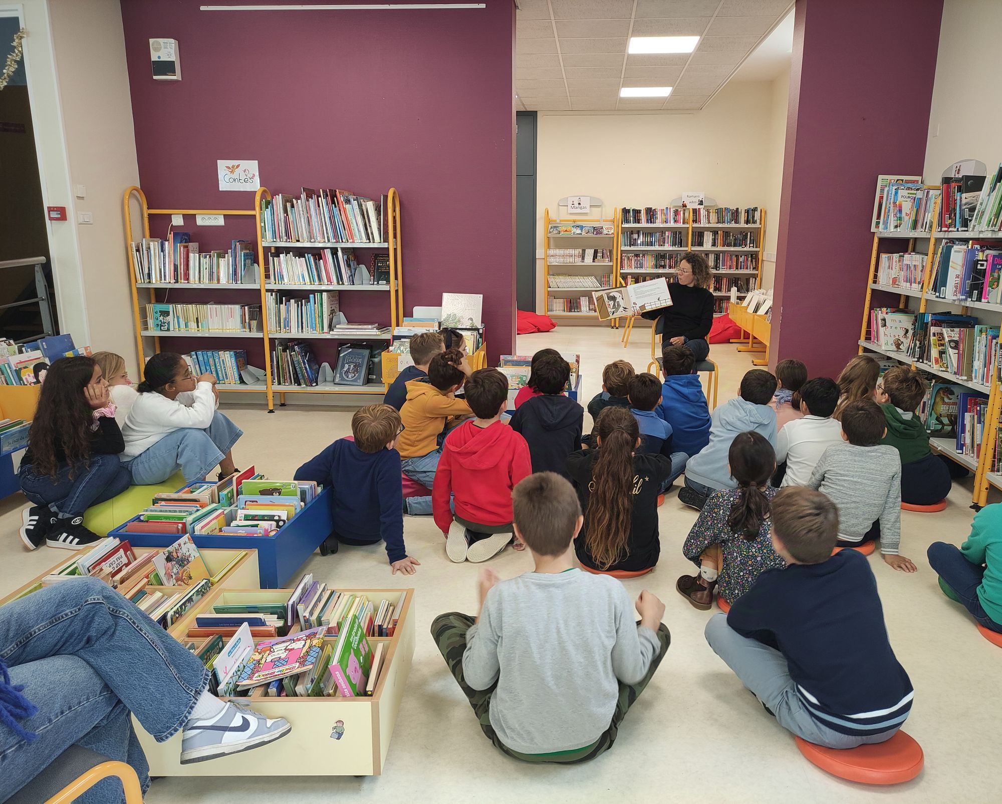 Tout au long de l’année les élèves des différentes classes se déplacent à la Bibliothèque et repartent avec un livre de leur choix, à rendre à la visite suivante.